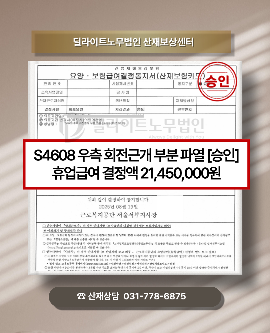 🔹[성공사례] 우측 회전근개 부분 파열 산재 승인 및 휴업급여 지급 사례(#성남광주산재노무사 #산재전문법인)